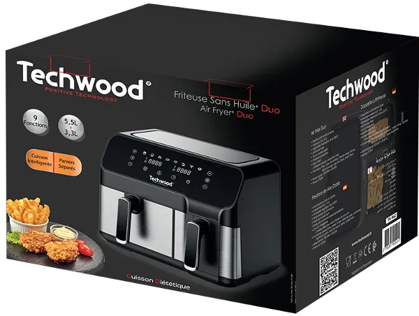 مع المقلاة الهوائية من Techwood، استمتع بتجربة طهي سريعة، صحية، ولذيذة دون الحاجة إلى استخدام الزيوت، مما يجعلها الخيار المثالي لكل من يرغب في الجمع بين الصحة والمذاق الرائع.