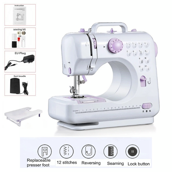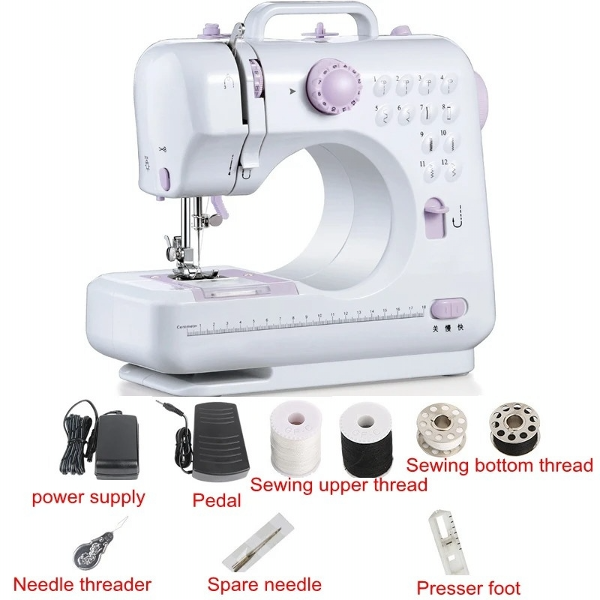 01/ هذه الآلة تحتوي على 12 نوعًا من الغرز، مثل الخياطة المستقيمة والغرز الزاغزاغية، لتلبية احتياجات متنوعة.